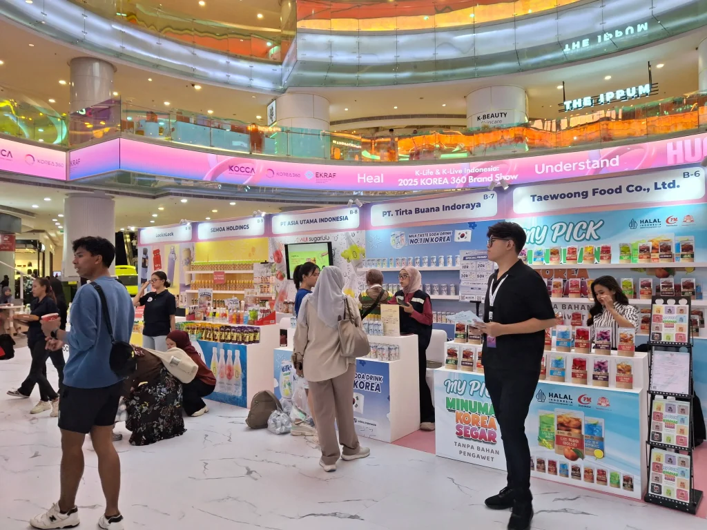 Lelah berkeliling? Saatnya “refill energi” di area K-Food! Di sini, aroma camilan dan minuman segar langsung menyambut. Taewoong Food Co., Ltd. menjadi primadona bagi mereka yang mencari minuman segar khas Korea. Ada juga SEMOA HOLDINGS, Ones Farm Co., Ltd., dan BTC Corporation yang membawa berbagai produk makanan inovatif.